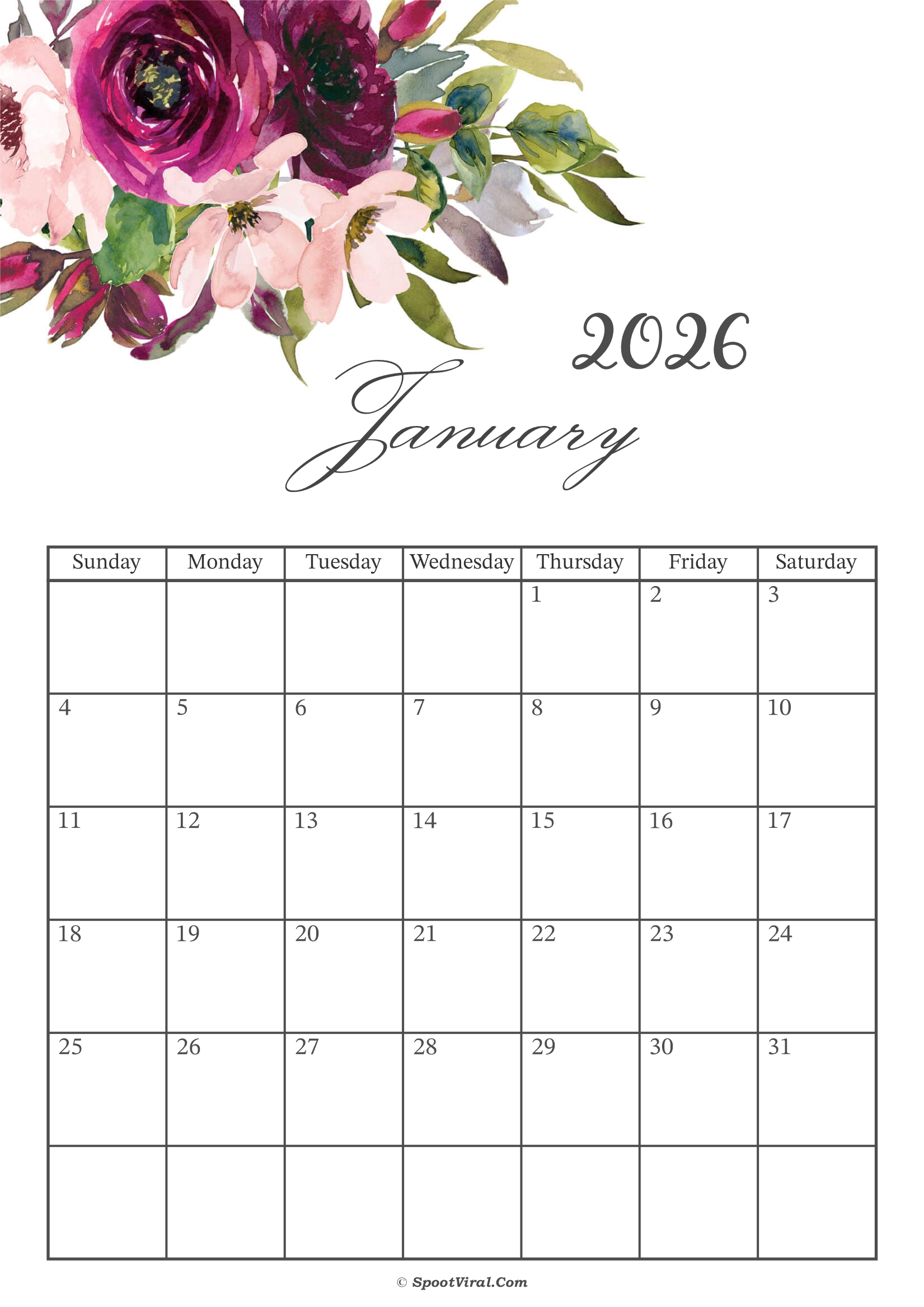 January 2026 Calendar Floral by Admin | Aug 21, 2025 | 0 comments January 2026 Calendar Floral Submit a Comment Cancel replyYour email address will not be published. Required fields are marked *Comment * Name * Email * Website Save my name, email, and website in this browser for the next time I comment.
