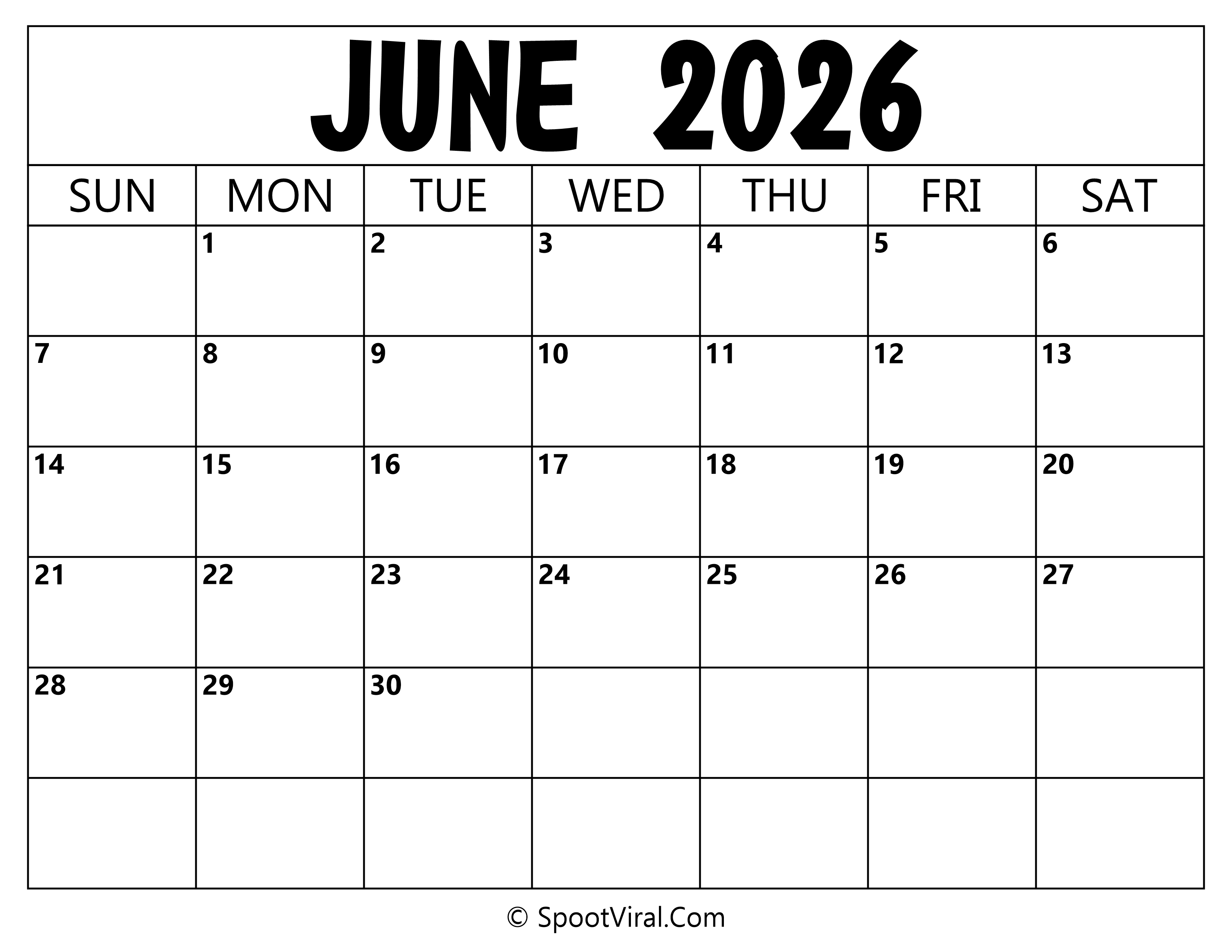 Blank Calendar June 2026 by Admin | Sep 26, 2025 | 0 comments Blank Calendar June 2026 Submit a Comment Cancel replyYour email address will not be published. Required fields are marked *Comment * Name * Email * Website Save my name, email, and website in this browser for the next time I comment.