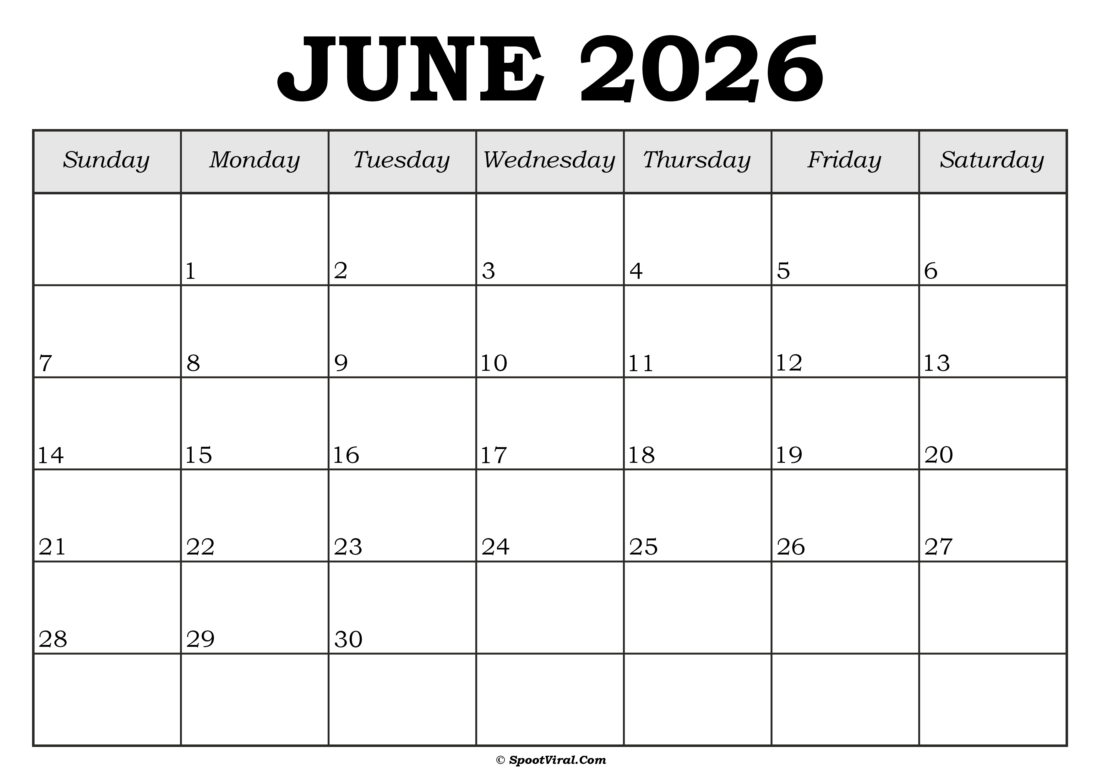 June 2026 Calendar Template by Admin | Sep 26, 2025 | 0 comments June 2026 Calendar Template Submit a Comment Cancel replyYour email address will not be published. Required fields are marked *Comment * Name * Email * Website Save my name, email, and website in this browser for the next time I comment.