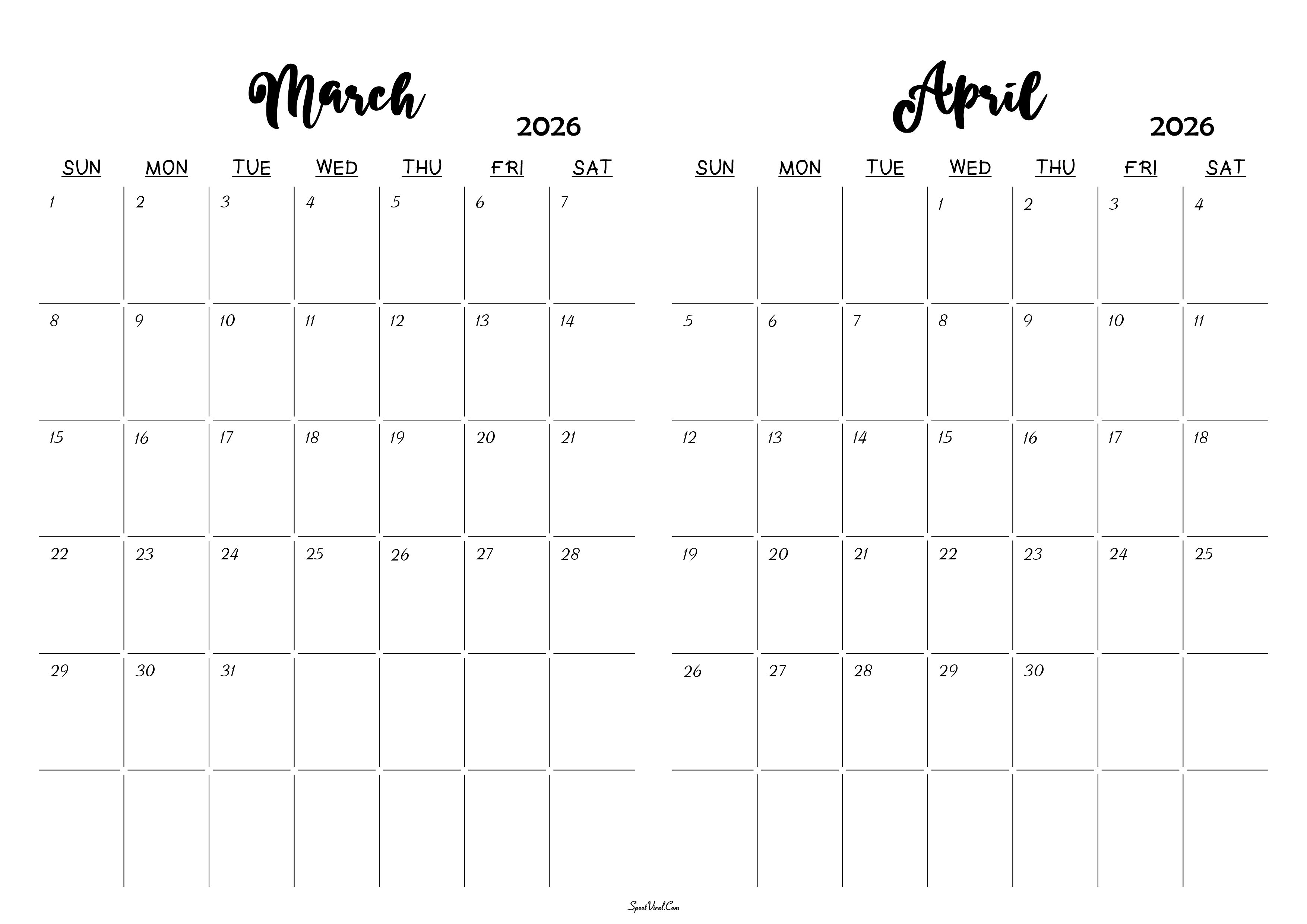 March April 2026 Calendar by Admin | Sep 25, 2025 | 0 comments March April 2026 Calendar Submit a Comment Cancel replyYour email address will not be published. Required fields are marked *Comment * Name * Email * Website Save my name, email, and website in this browser for the next time I comment.
