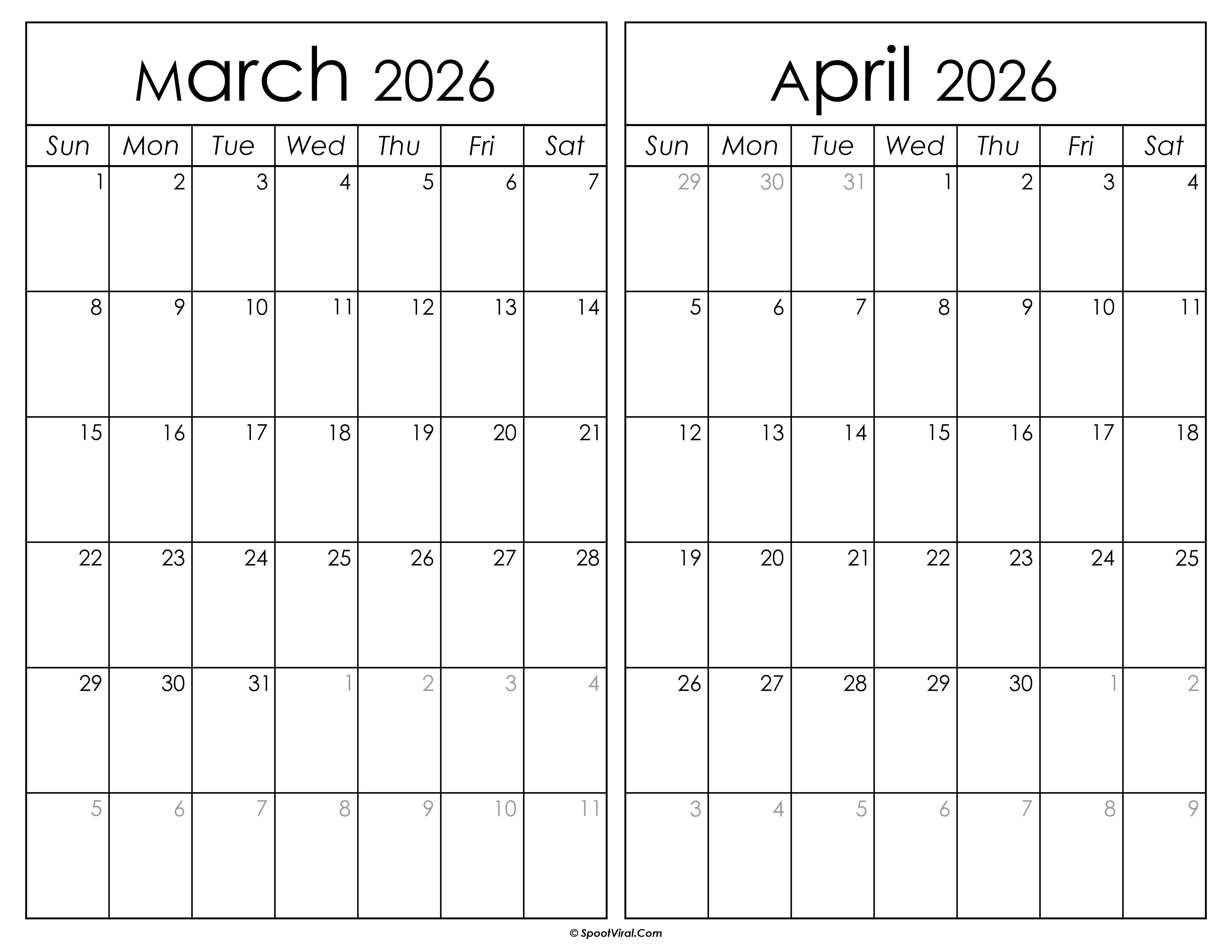Printable March April 2026 Calendar by Admin | Sep 25, 2025 | 0 comments Printable March April 2026 Calendar Submit a Comment Cancel replyYour email address will not be published. Required fields are marked *Comment * Name * Email * Website Save my name, email, and website in this browser for the next time I comment.