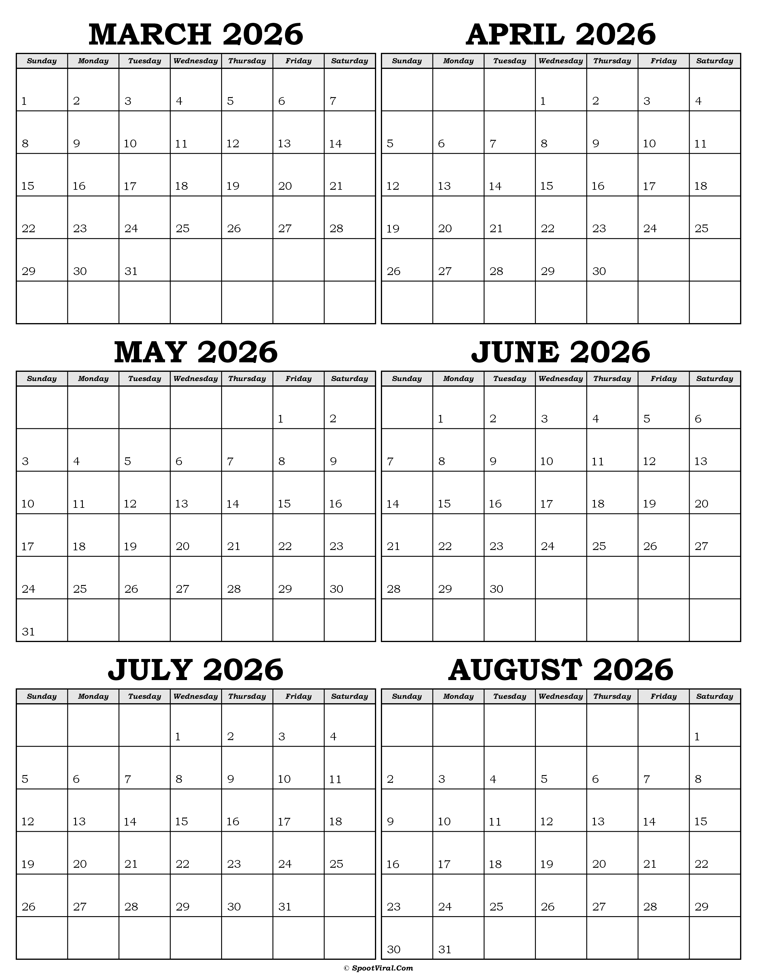 Calendar March to August 2026 by Admin | Sep 25, 2025 | 0 comments Calendar March to August 2026 Submit a Comment Cancel replyYour email address will not be published. Required fields are marked *Comment * Name * Email * Website Save my name, email, and website in this browser for the next time I comment.