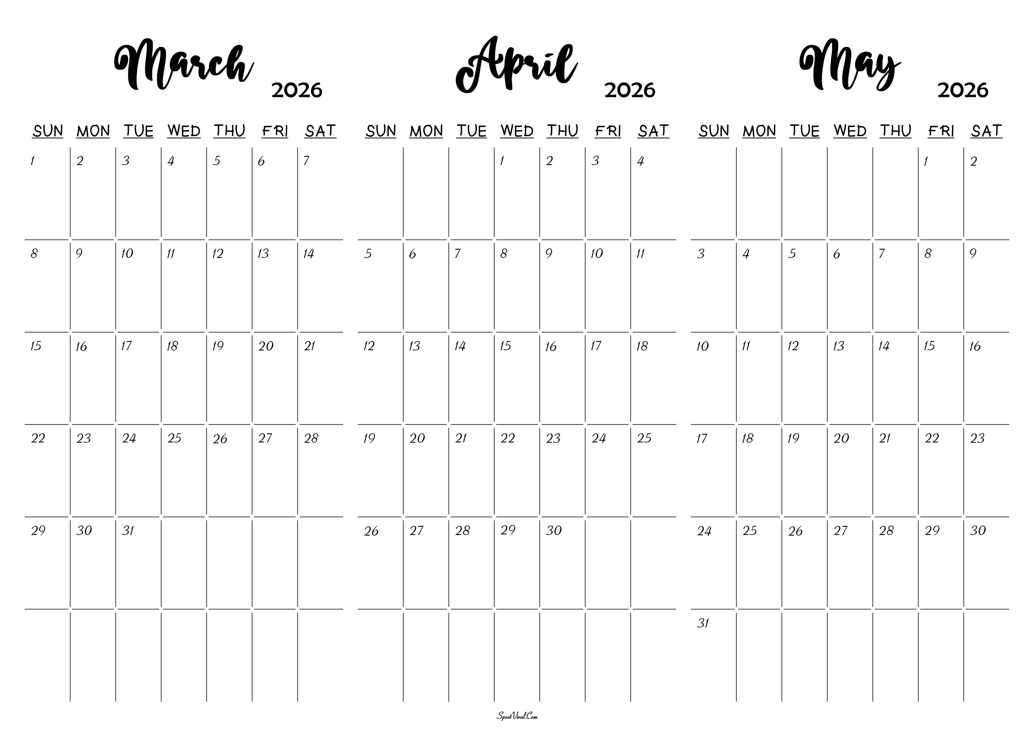 March April May 2026 Calendar by Admin | Sep 25, 2025 | 0 comments March April May 2026 Calendar Submit a Comment Cancel replyYour email address will not be published. Required fields are marked *Comment * Name * Email * Website Save my name, email, and website in this browser for the next time I comment.