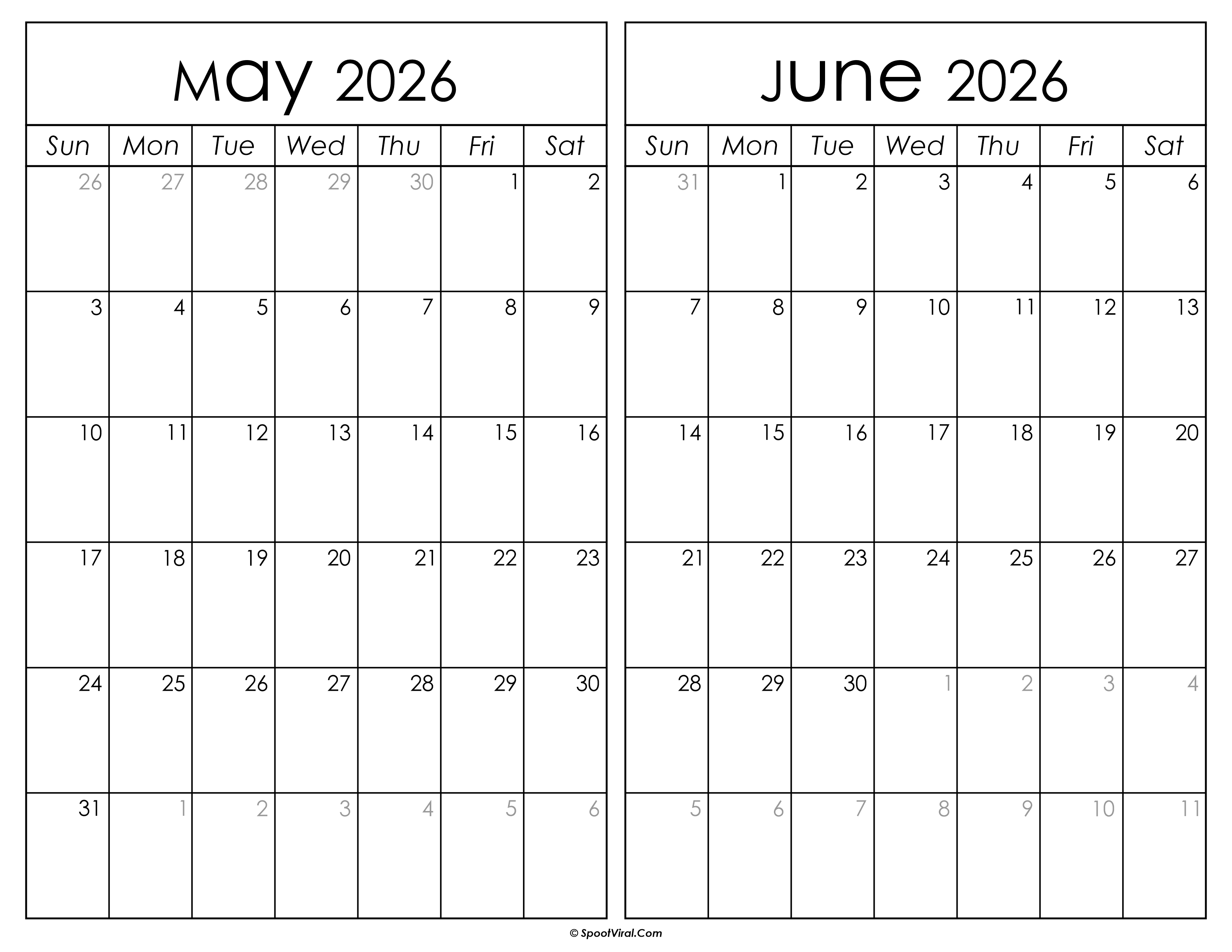 Printable May June 2026 Calendar by Admin | Sep 26, 2025 | 0 comments Printable May June 2026 Calendar Submit a Comment Cancel replyYour email address will not be published. Required fields are marked *Comment * Name * Email * Website Save my name, email, and website in this browser for the next time I comment.